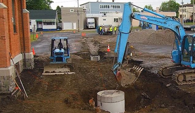 - Excavate: Trenches are dug below the parking lot’s surface where drainage is needed.